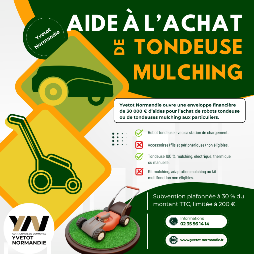 Yvetot Normandie renouvelle son aide à l’achat de tondeuse mulching, en réouvrant, comme l’an passé, une enveloppe financière de 30 000 € d’aides aux particuliers.